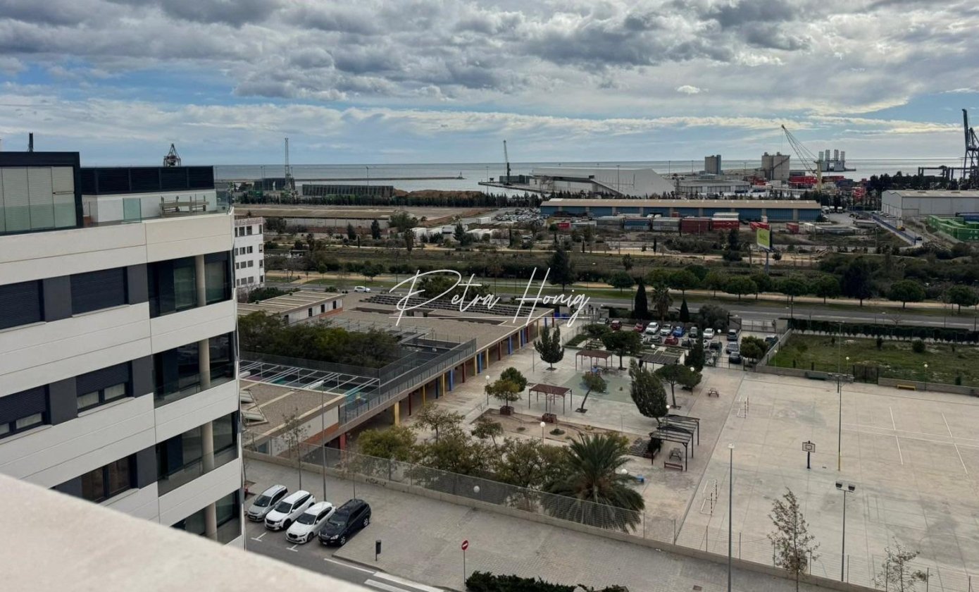 Denne enestående penthouse, der er klar til indflytning, tilbyder 120 m2 bebygget areal fordelt på tre soveværelser og to komplette badeværelser. Et af soveværelserne udmærker sig ved sin generøse størrelse, hvilket gør det ideelt som master suite. Den store stue er hjertet i hjemmet, fyldt med naturligt lys og med en smuk havudsigt, der skaber en unik boligoplevelse i byens centrum.