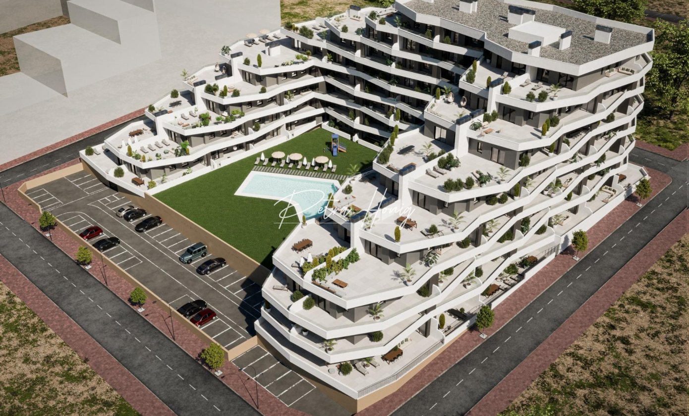 Dette nybyggede boligkompleks i San Miguel de Salinas tilbyder moderne 2- og 3-værelses lejligheder med store terrasser, omhyggeligt fordelt på syv etager. Det indhegnede område byder på førsteklasses faciliteter, herunder separate swimmingpools til voksne og børn, frodige grønne områder, en legeplads og en wellness-zone for voksne med en biosaludable bane.