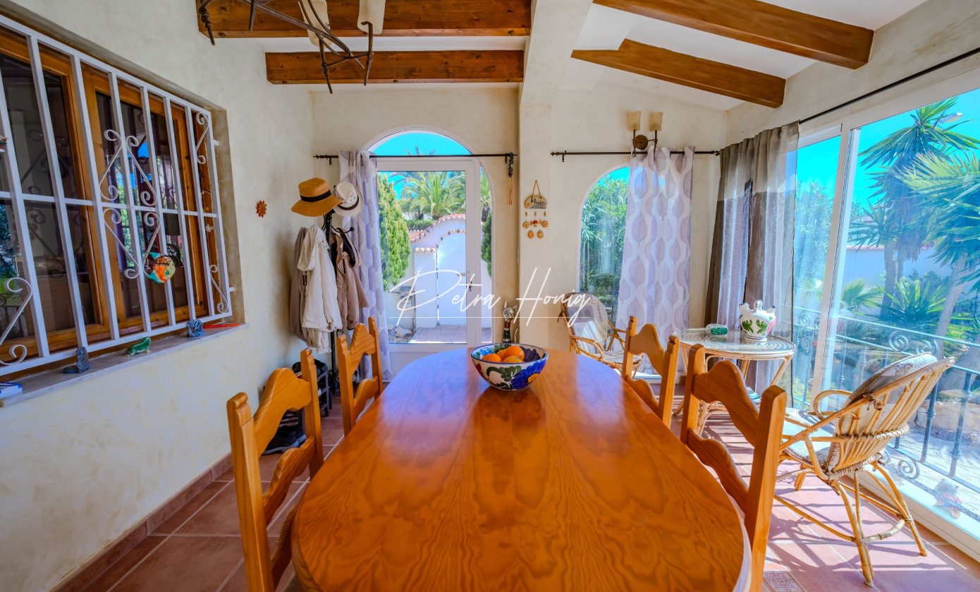 La casa principal dispone de 2 dormitorios y 1 baño, junto con un amplio salón. Una terraza acristalada ampliada se ha transformado en un luminoso comedor con acceso directo a la atractiva zona de piscina, creando una perfecta conexión entre el interior y el exterior.