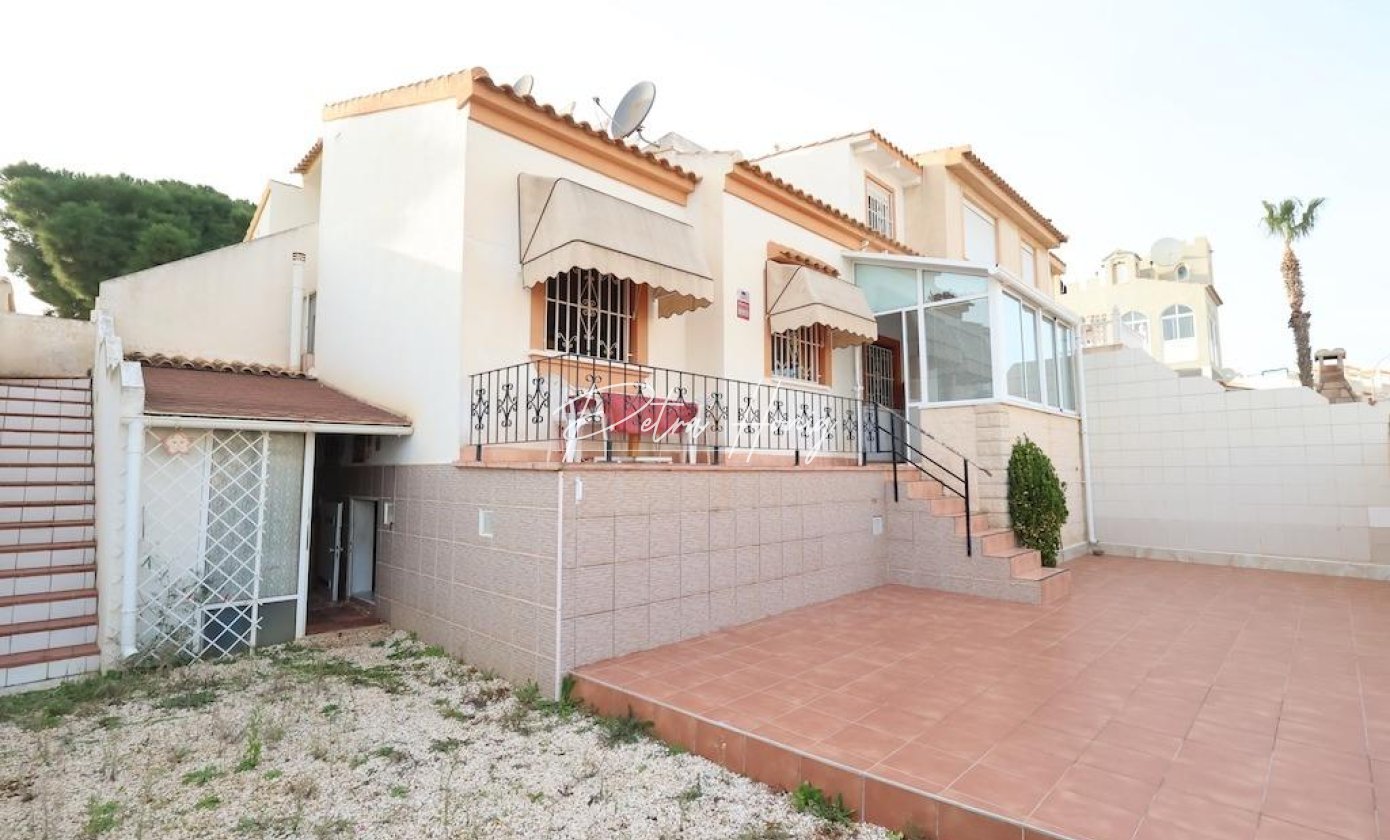 La Florida: Geschakelde woning met oprit en een tuin van 84 m2. De woning van 62 m2 beschikt over 3 slaapkamers (twee beneden, één boven), 1 badkamer, woon-eetkamer en aparte keuken. Voorzien van twee terrassen (één beglaasd, één open), een ruime kelder, berging en een dakterras van 23 m2 met zeezicht. Wordt gemeubileerd verkocht.