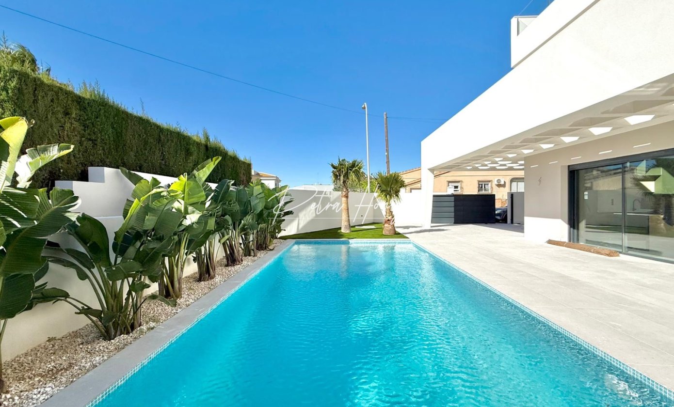 KEY READY. We are delighted to present this stunning new-build villa that perfectly blends Mediterranean elegance with the highest quality and cutting-edge technology. From its solid foundations to its luxurious finishes, every detail has been meticulously designed to provide comfort, security, and style. Step into a world of excellence and experience the joy of living in a home that truly reflects your dreams.