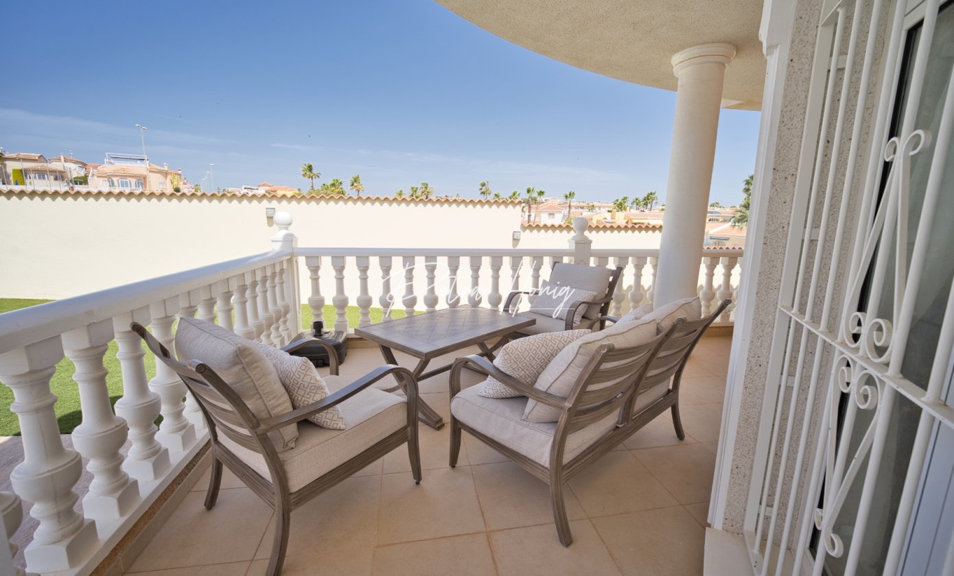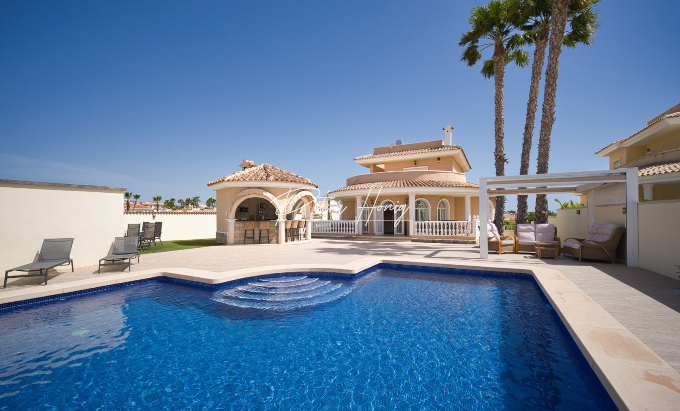We are delighted to offer this impressive 4 bedroom, 3 bathroom detached villa with swimming pool in the most sought-after area of Ciudad Quesada. Set on a generous 786m² plot, this beautiful home offers space, comfort and a touch of luxury throughout.
