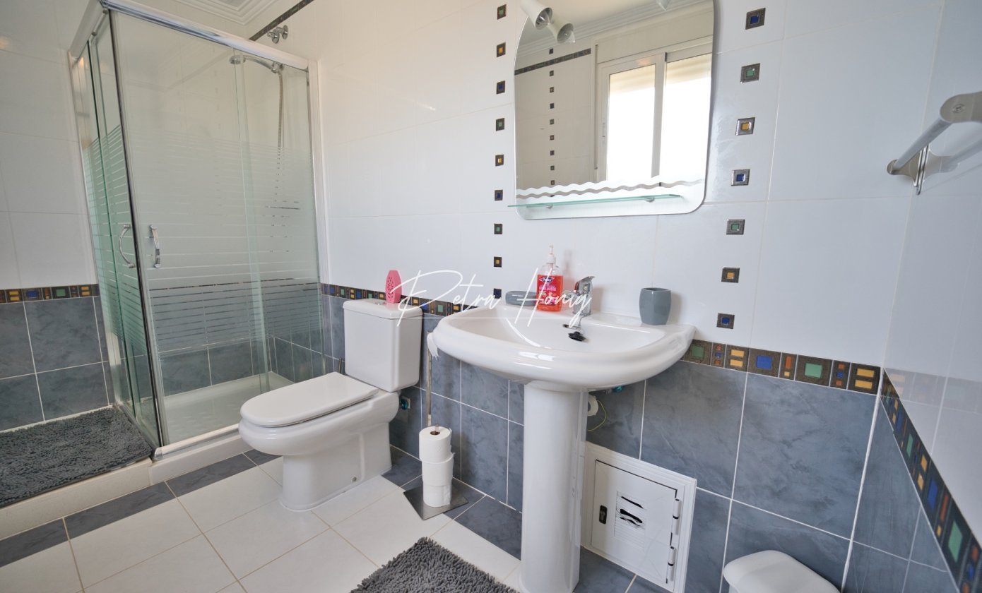 Upstairs, you will find two further large bedrooms, both with modern en-suite bathrooms. The front bedroom enjoys access to a huge private terrace, overlooking the easy-to-maintain garden and the inviting private pool area. Head up again and you will reach the roof terrace, where the views stretch across the salt lakes and out to the Mediterranean Sea – simply stunning.