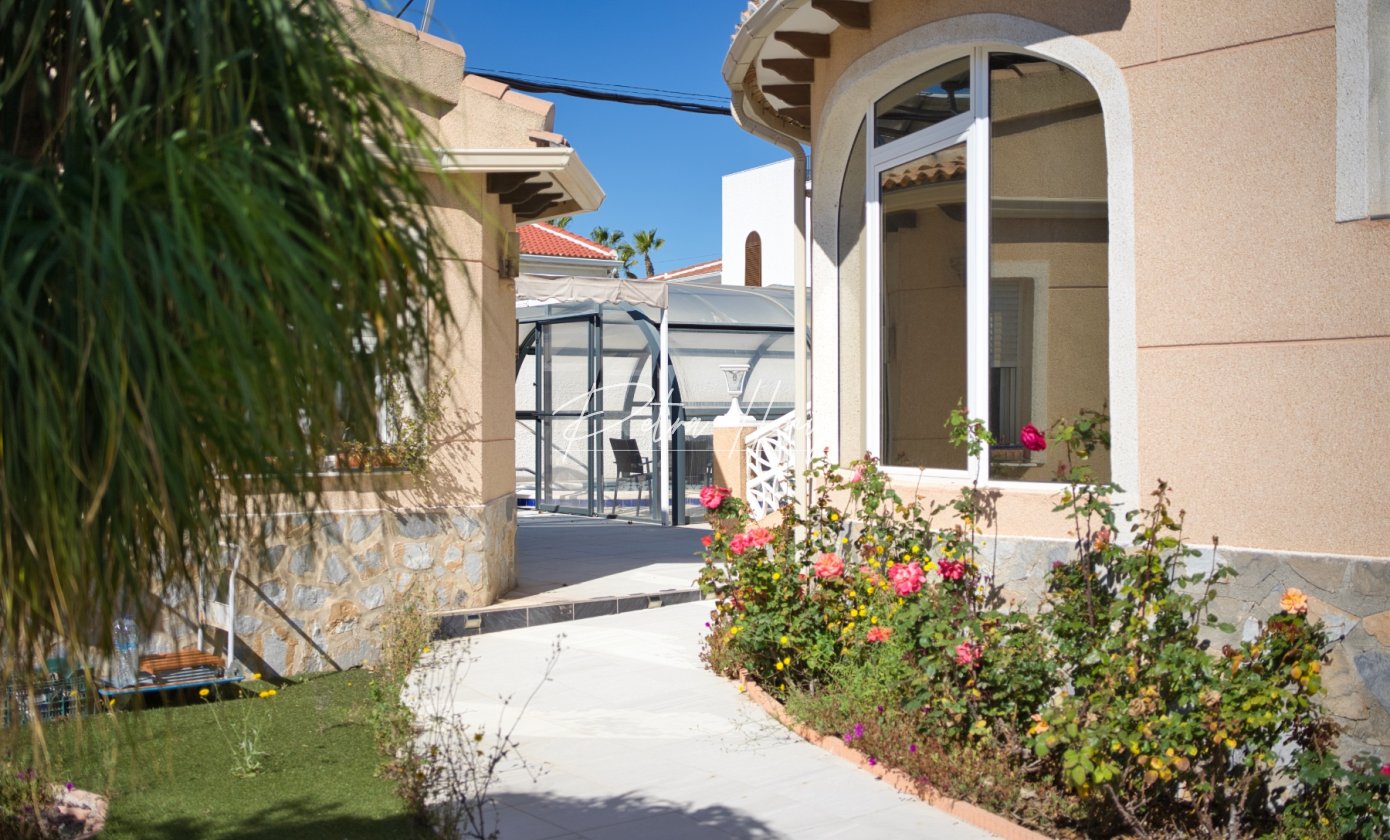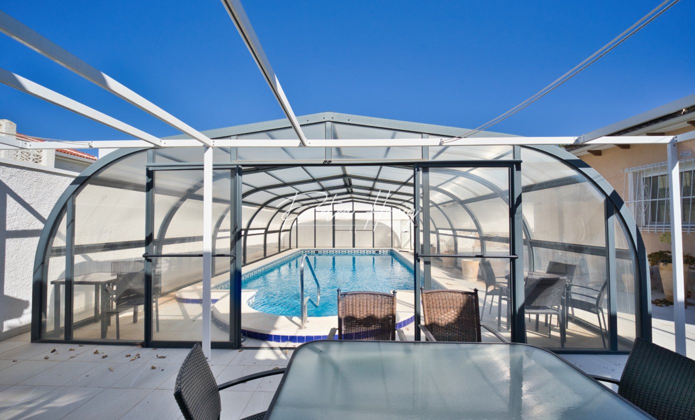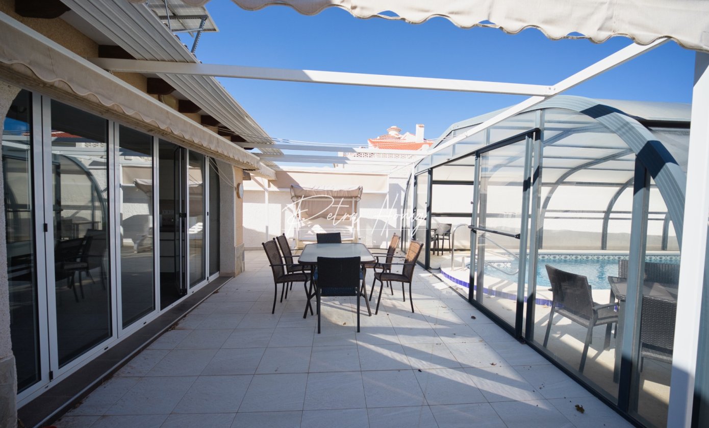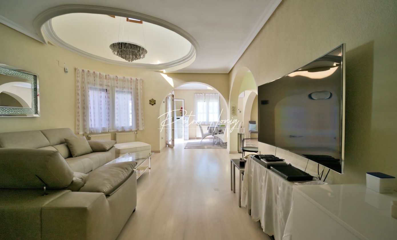 This beautifully presented 4-bedroom, 2-bathroom villa sits on a large plot in the sought-after area of Ciudad Quesada. The main house offers single-level living with 3 bedrooms and 2 bathrooms for optimal comfort and convenience, featuring a bright and airy living room, well-equipped kitchen, and a large glazed terrace perfect for relaxation and entertaining year-round.