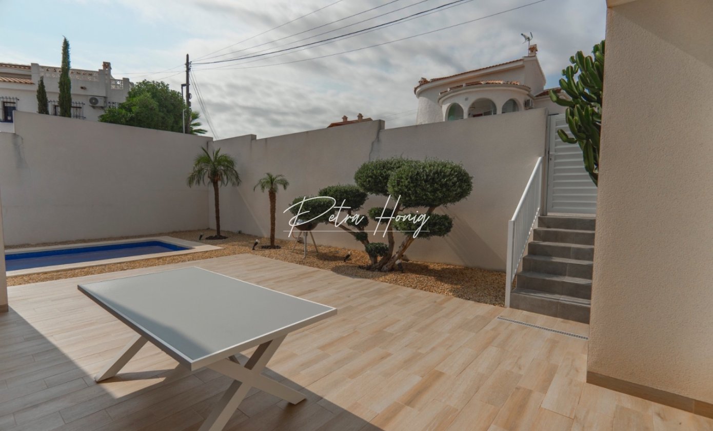 This charming villa blends modern design with functional elegance. Bright interiors flow seamlessly into inviting outdoor spaces, including a private pool, multiple patios, and a rooftop solarium with sweeping views of the surrounding area and La Marquesa Golf Course. Whether as a full-time residence, a holiday getaway, or a smart investment, this property delivers convenience and lifestyle appeal in one of Costa Blanca’s most sought-after areas.