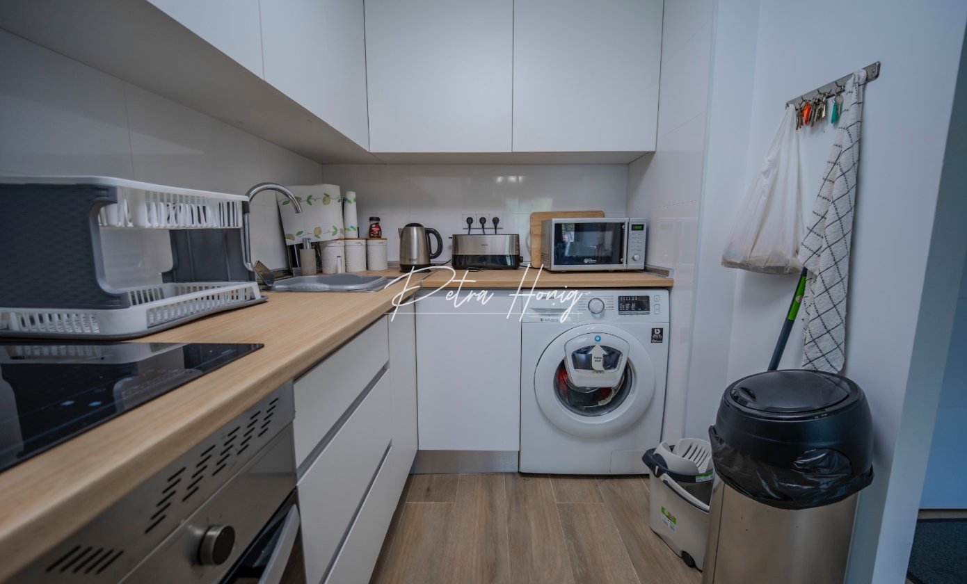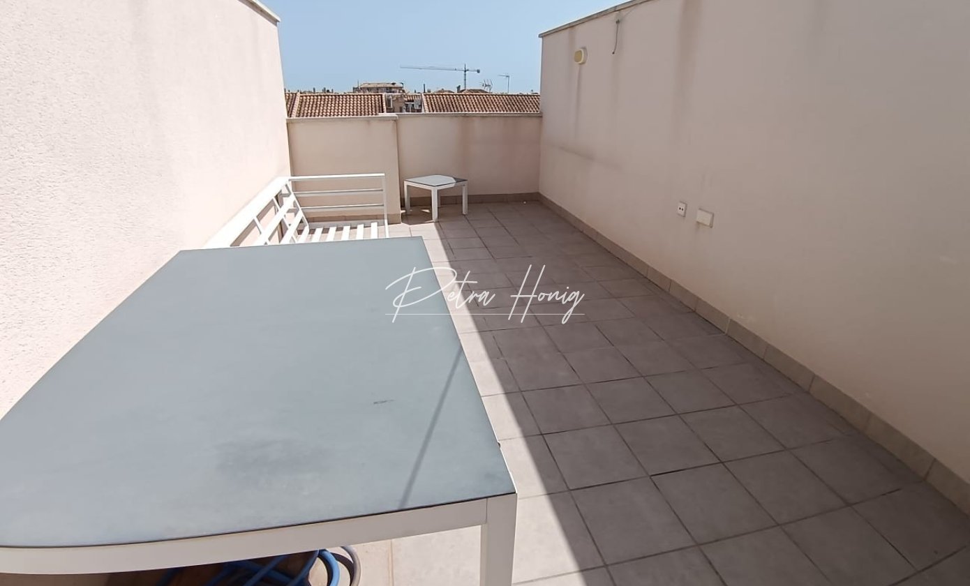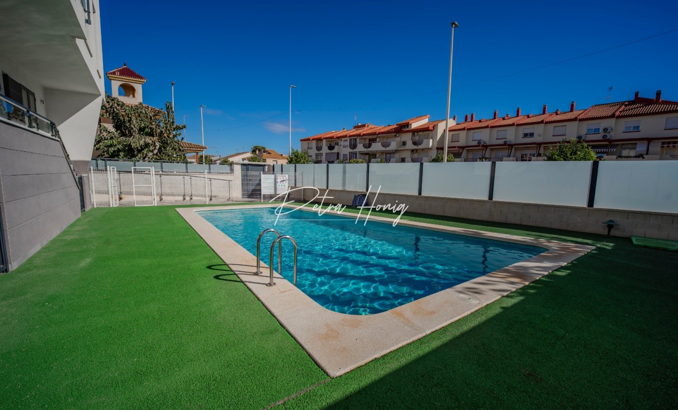 We are very pleased to bring to the market this fabulous 3 bedroom 2 bathroom ground floor beach apartment with it own private roof terrace and allocated underground parking space plus storage room. The apartment has 2 bright double bedrooms one of which has an en-suite shower room. There is also a spacious single bedroom plus a family bathroom. There is a good size lounge/dining room and a modern american kitchen. The lounge has a glazed in balcony area overlooking a green open space. There is also a lovely communual pool and a lift to access your private roof terrace and your underground parking space. The supurb sandy beach and the Mar Menor sea are only a two minute walk away and restaurants bars and all other facilities are on your doorstep. All in all this is a very rare oppotunity to own a little gem in an excellent beach location.