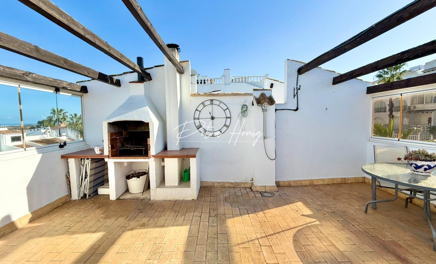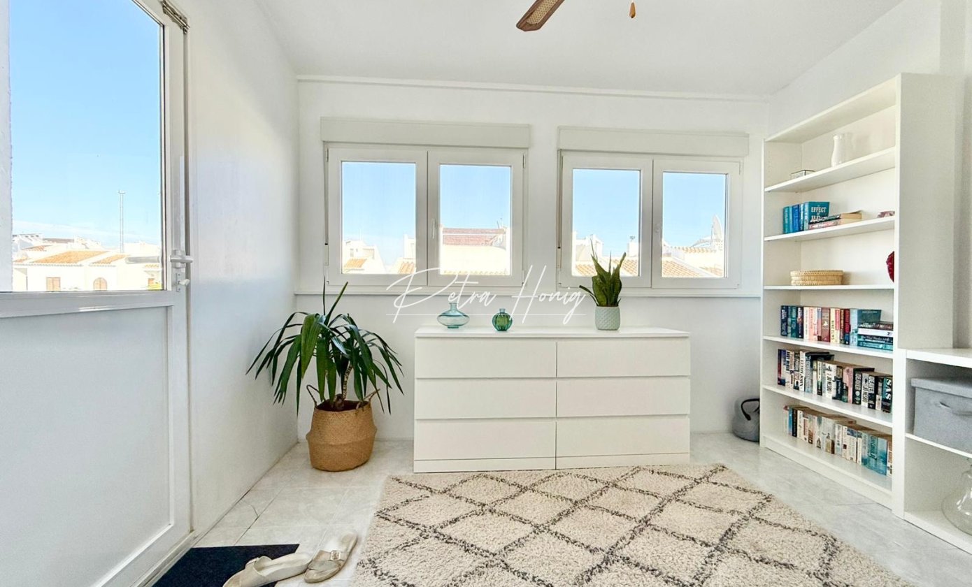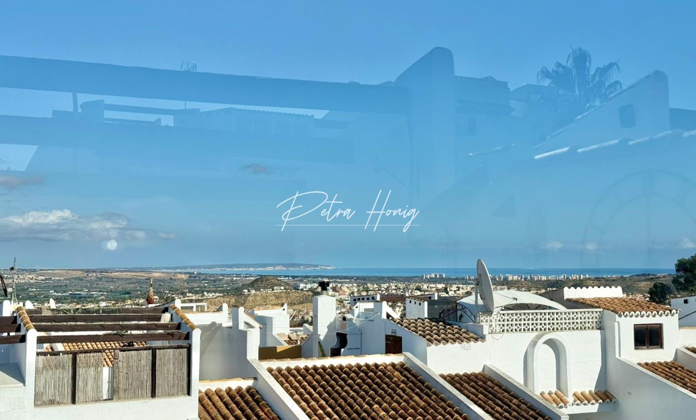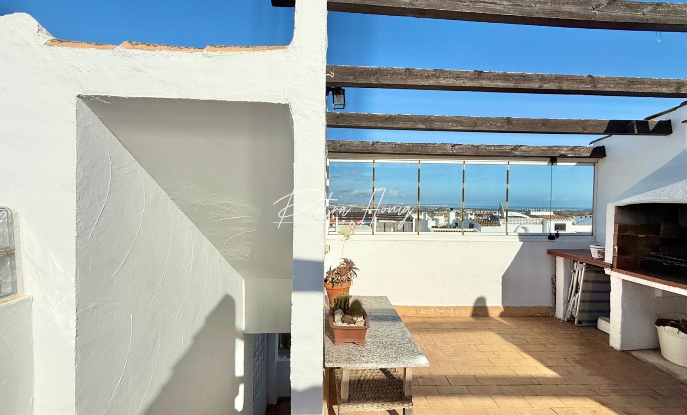 This beautifully refurbished two-bedroom end-terraced townhouse is offered for sale in the heart of Ciudad Quesada, a vibrant and sought-after residential area of the Costa Blanca. Situated close to the town centre, this property combines classic Spanish charm with modern upgrades. Capturing sweeping sea views from the elevated solarium and featuring its communal pool, it presents an exceptional opportunity for both full-time living and holiday use.