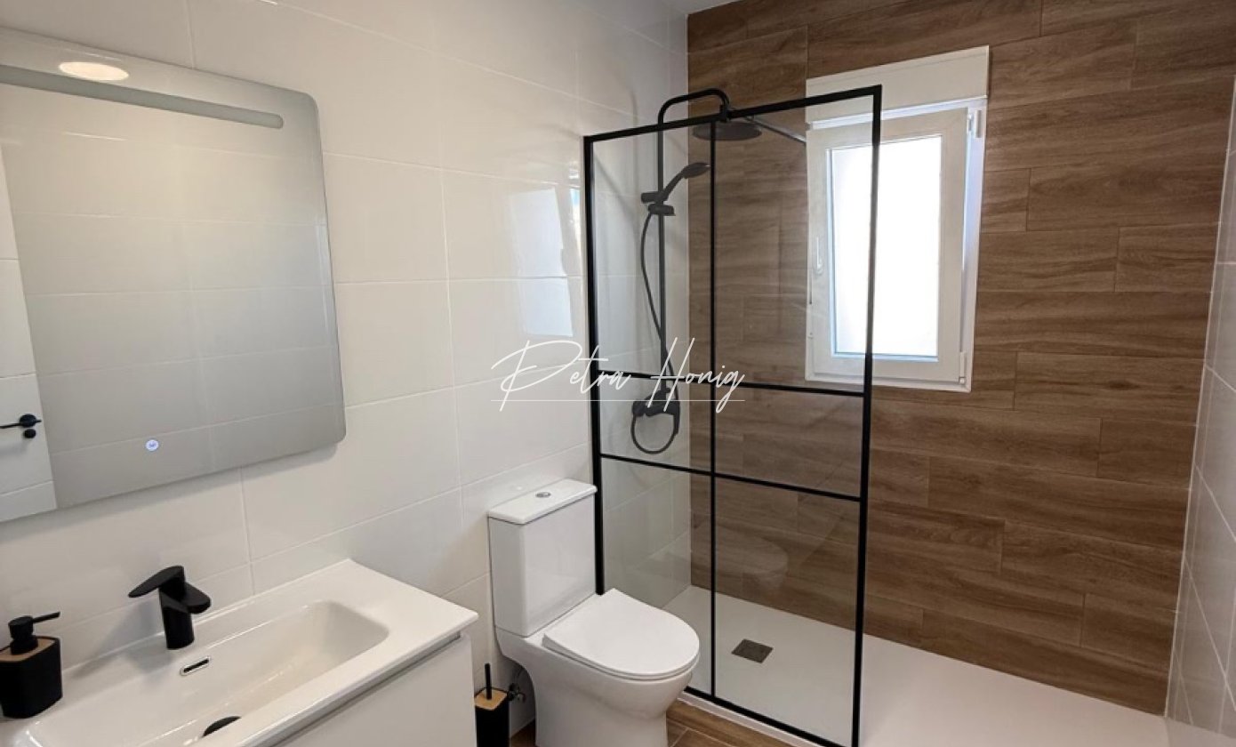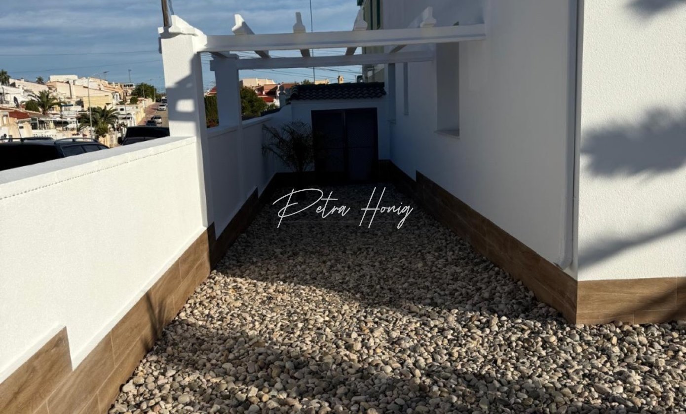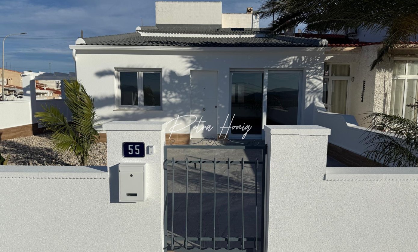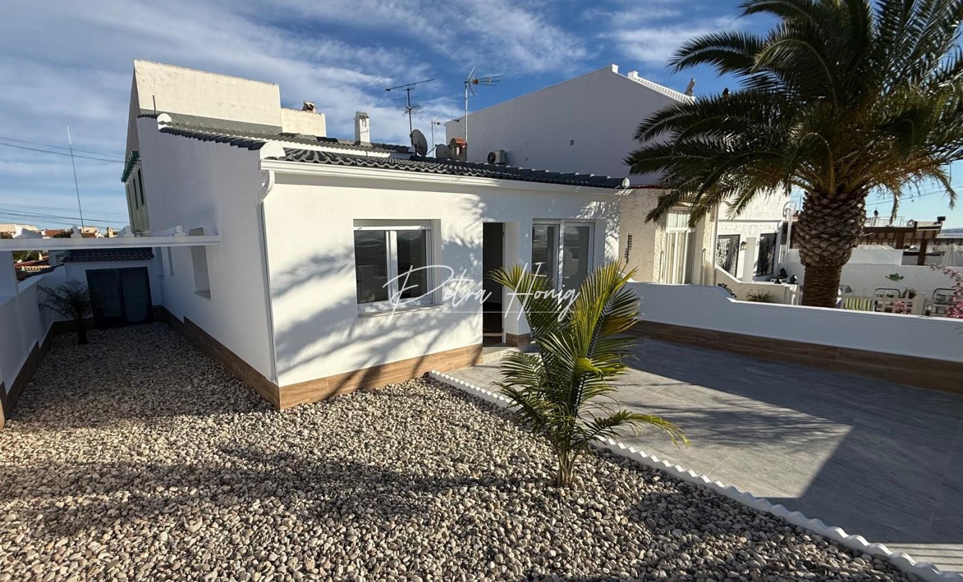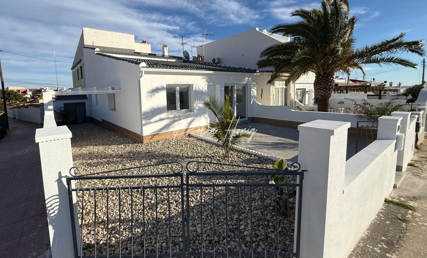 Beautifully presented 3 bedroom, 1 bathroom semi-detached bungalow located in a non-community area of Ciudad Quesada. The property has been completely refurbished to a high standard and is set on a corner plot offering privacy and space.