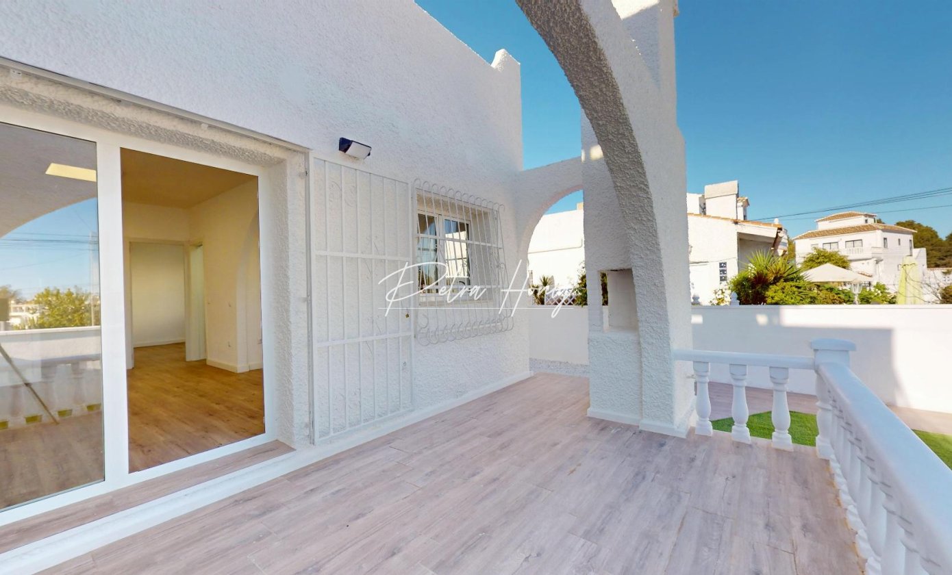 Discover an exceptional opportunity in Blue Lagoon a fully renovated bungalow, ready to move into, where Mediterranean charm and contemporary design meet in a prime location. Priced at €199,000, this property is an ideal choice both for living and for investment.Main features of the property202 m² plot with 147 m² of private garden58 m² built area48 m² private solarium with artificial grass and heather fencingPossibility to install a private swimming poolWood-effect laminate flooring2 bedrooms1 fully renovated bathroom with shower and screenNew kitchen fully equipped with appliances (washing machine and dishwasher)This bungalow has been carefully renovated to offer a turnkey home, balancing functionality, style, and warmth. The spacious garden invites you to enjoy outdoor living, while the solarium becomes a true private oasis for relaxation or social gatherings. very close to two golf courses, Villamartín Shopping Centre, and well-known leisure spots such as Marimba Blue Pool Lounge Bar and the iconic Greenlands Blue Lagoon.IBI 144 €COMUNIDAD 199 € APROX AL AÑOA property designed for those seeking comfort, quality living, and a solid investment from day one.