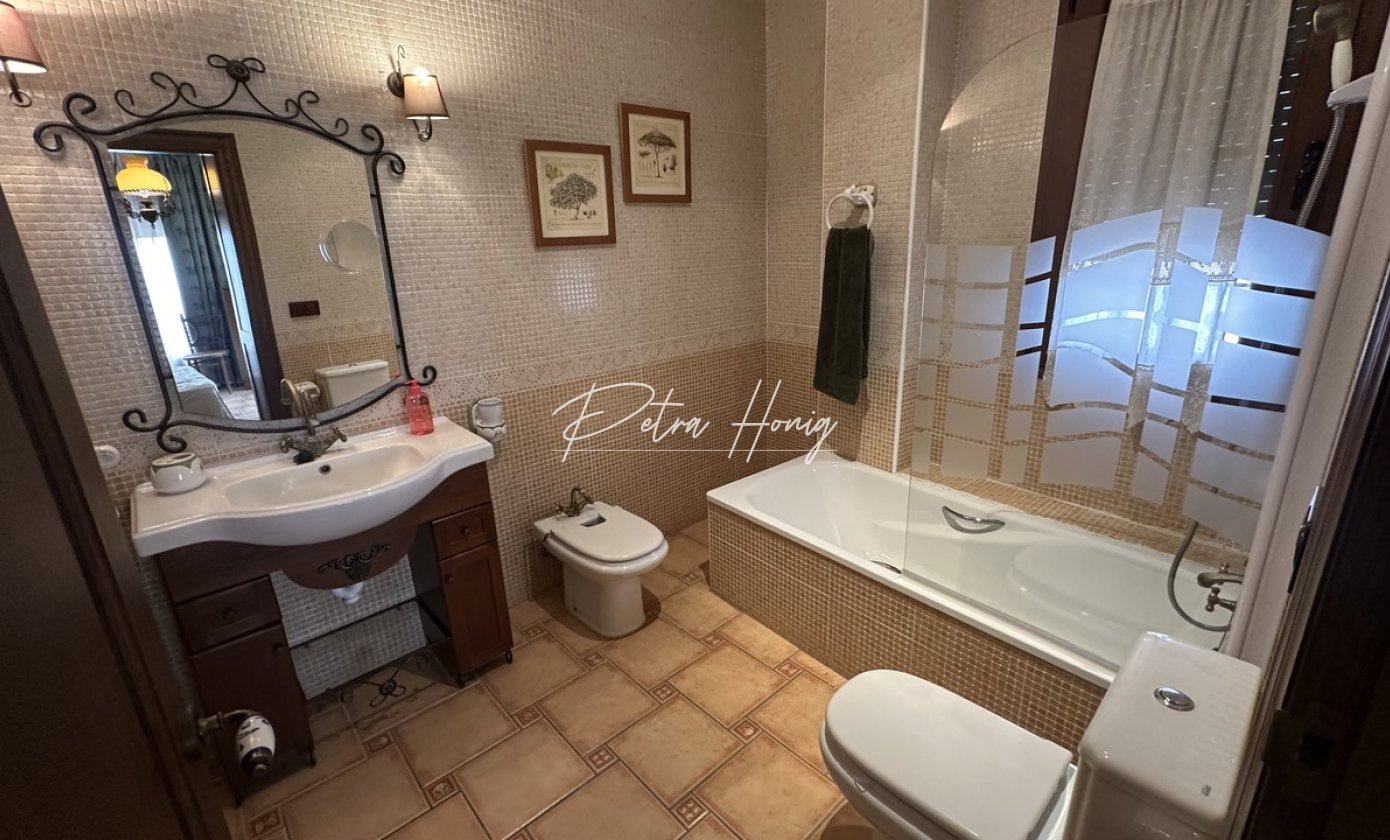 468 square meters of comfort and coziness are located on the second floor. It is surrounded by a beautiful courtyard with a swimming pool and a barbecue area. Inside there are four bedrooms, four bathrooms, a stylish living room with a fireplace, a spacious kitchen with a pantry and a laundry room. Three bedrooms have their own bathrooms, and the main one has a fabulous wardrobe. On the upper floor there is an attic and two terraces overlooking the sea and the Torrevieja Salt Lake Park.