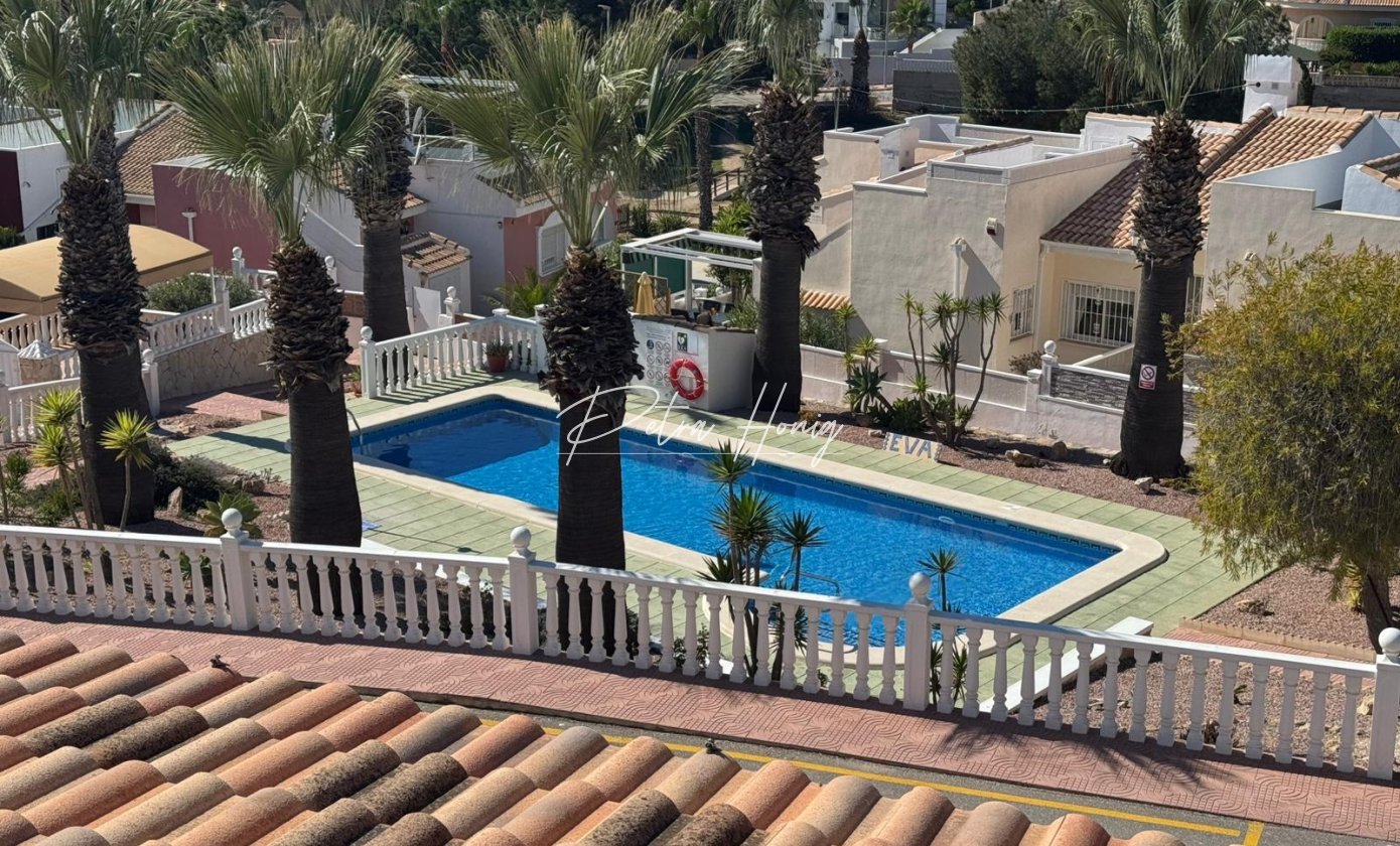 SOUTH WEST FACING 2 bedroom 2 bathroom semi detached bungalow over looking the community pool, off road parking and a private solarium, the property is located in a private cul de sac in La Fiesta, Ciudad Quesada