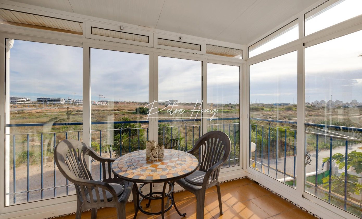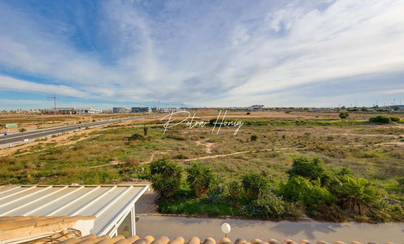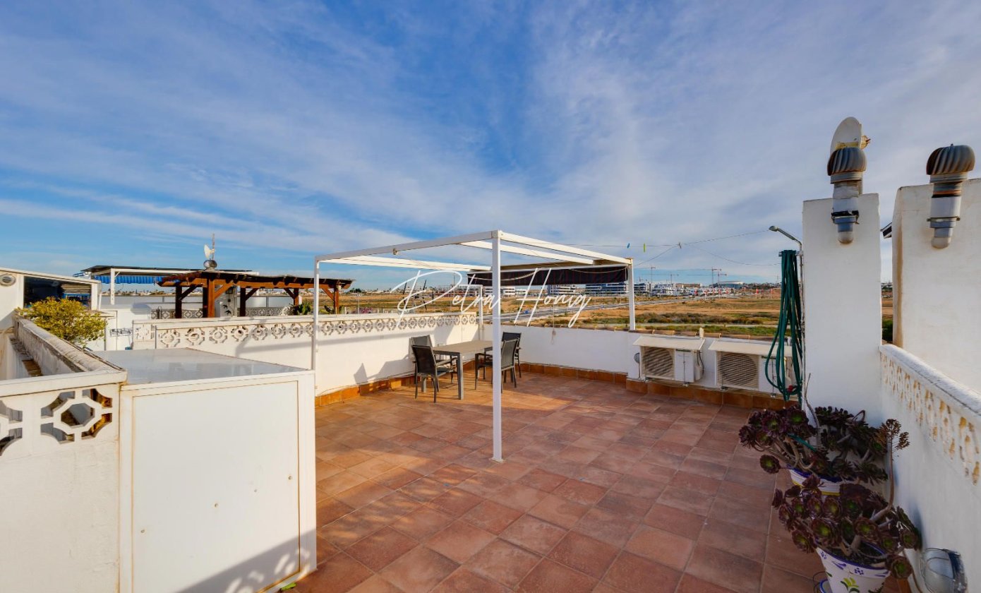 Charming top-floor apartment located in Jardín del Mar, near Carrefour and the Habaneras Shopping Centre, one of Torrevieja's most sought-after areas thanks to its tranquility and excellent access to all amenities. The property features three bedrooms, a bright living-dining room, a fully equipped kitchen, a bathroom, and a terrace perfect for everyday living. Its main attraction is the spacious private solarium, a versatile space where you can soak up the sun year-round, create a pleasant chill-out area (with a barbecue or even a jacuzzi), perfect for relaxing in privacy or entertaining friends. Situated in a well-maintained residential area, close to supermarkets, parks, public transport, and just minutes from the town centre and beaches, this apartment offers comfort, a great location, and a truly exceptional outdoor space.