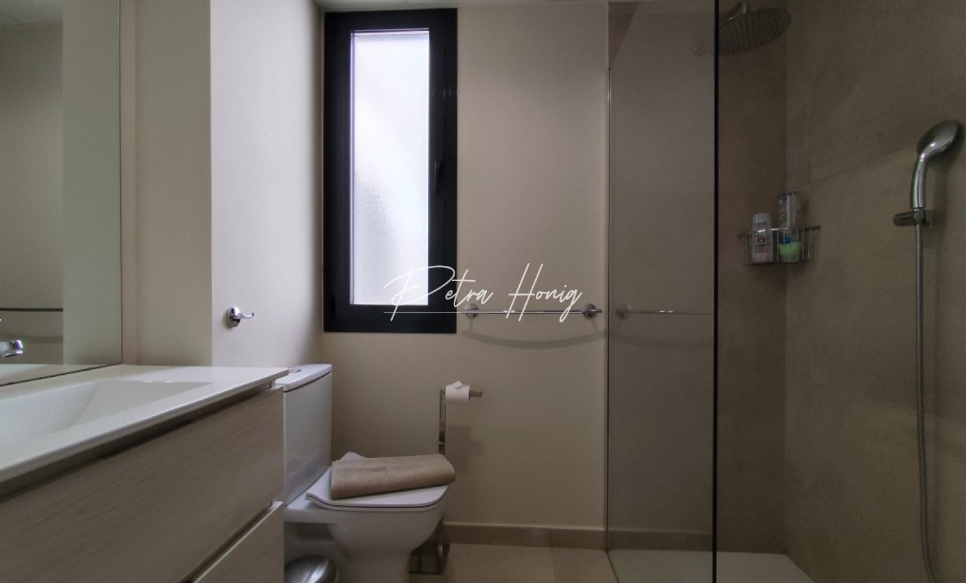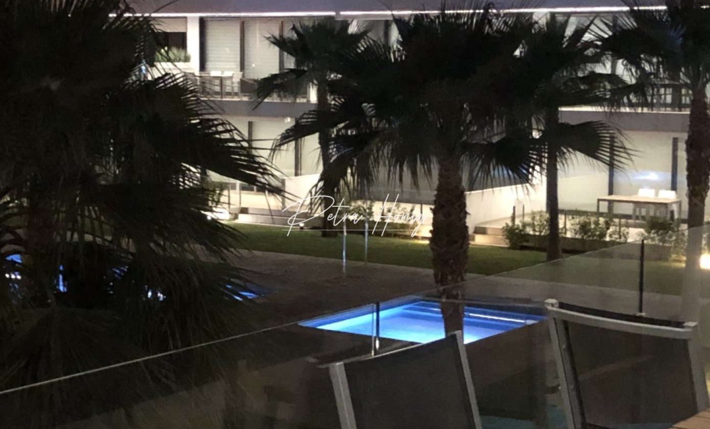 Situated on the first floor of a low-rise residential complex, the apartment features a private rooftop solarium with beautiful views of the mountains and the sea, just 500 meters from the beach.