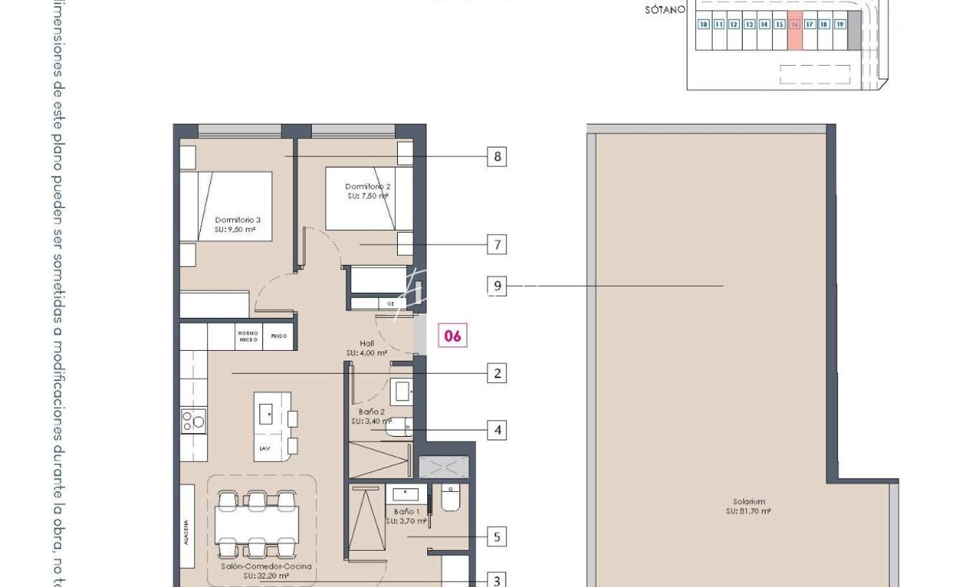 Projektet erbjuder rymliga lägenheter med tre sovrum och två badrum, varav ett är en-suite. Köpare kan välja mellan lägenheter på bottenvåningen med stora terrasser och privata trädgårdar, lägenheter på mellanvåningen med generösa terrasser eller takvåningar med terrass och privat solarium. Solariet är förberett för ett sommarkök, perfekt för att njuta av det medelhavsklimatet.